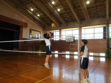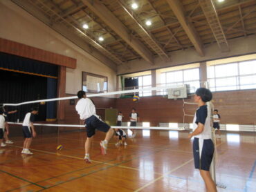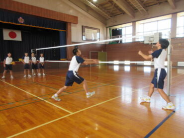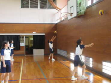 9年生の保健体育では、バレーボールに取り組んでいます。今日は、「力強いスパイクを打つための上半身の使い方」にポイントを置き、3歩助走から腕の振り方、空中姿勢を意識したスパイク練習を行いました。暑さに負けず、力強いスパイクを何本も打っていました。今までの練習の成果を生かし、次の時間から始まるゲームにぜひ生かしてほしいです。