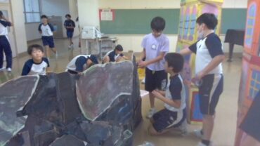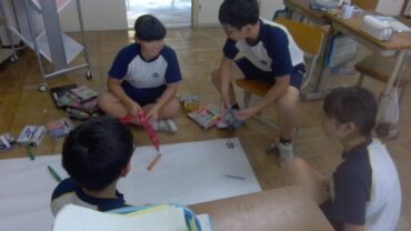 6年生は学習発表会の劇に向けて自分たちの衣装や小道具、大道具などを自分たちで作っています。文字通り自分たちで作り上げる劇は思い出に残るものになると思います。およそ一か月後の本番に向けて前期課程のリーダーとして後輩にすてきな背中を見せられるようにこれからも取り組んでいきます。本番をお楽しみに。