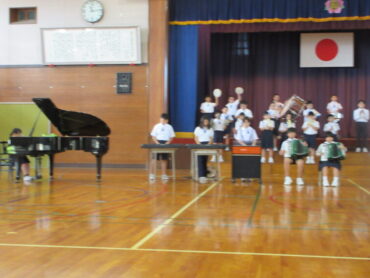 2025.10.2 4学年 5学年 6学年 4・5年 音楽交流会練習 10月7日に行われる高岡西部小学校との音楽交流会に向けて、体育館で練習をしました。合唱は「ふるさと」、合奏は「アラジン・メドレー」です。今日は、6年生や他学年の先生方に、聞いていただきました。よかったところや、本番までもっとできること等、たくさんのご意見やアドバイスをいただきました。本番では、4・5年生の心を合わせて、更にきれいで楽しい演奏ができるよう、がんばりたいです。
