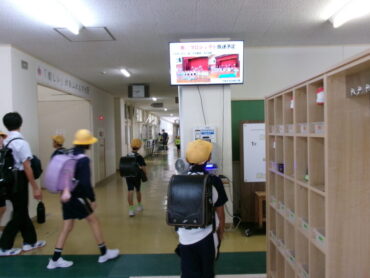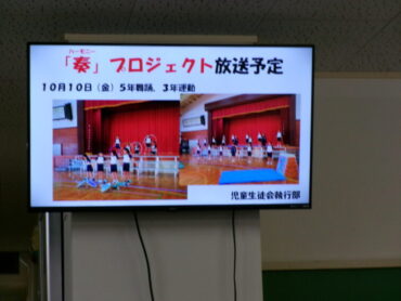2025.10.8 全校生 朝の玄関 児童生徒玄関のモニターが毎日更新されています。 今日は、「奏(ハーモニー)」プロジェクトの放送予定が紹介されました。 学修発表会まであと11日。全校で、気持ちを高めていきましょう。
