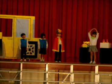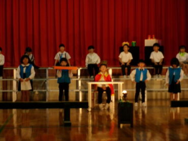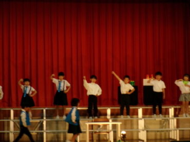 今日は、今までの練習の成果を、先生方に見ていただきました。セリフもしっかり覚えて、人物の気持ちになって言うことができました。衣装の早着替えも、とてもスムーズにでき、お話の楽しさが伝わってきました。本番まで、さらに動きを大きくしたり、ダンスの動きをそろえたりしたいと思います。皆さん、楽しみにしていてください。