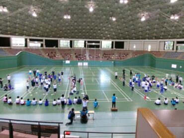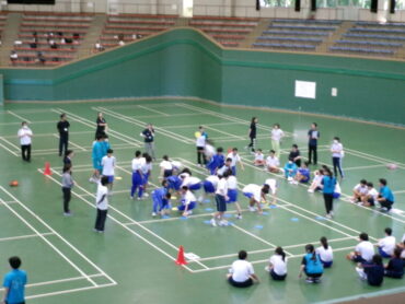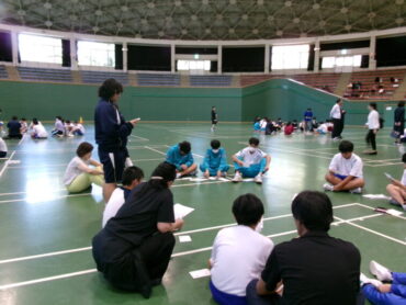 自己紹介の後、いろいろな運動ゲームで、他校の生徒との交流も深めながら楽しく活動してきました。