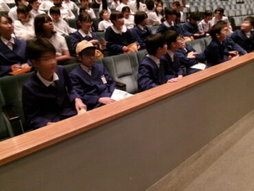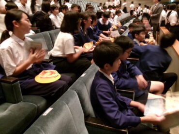 2025.10.14 NEW 6学年 6年 こころの劇場 6年生が、高岡文化ホールで行われた「こころの劇場」へ行ってきました。 今年はミュージカル『カモメに飛ぶことを教えた猫』を観劇しました。みんな劇団の方たちの演技に引き込まれ、命がつながっていることや、勇気を出して踏み出すことなど、多くのことを考えさせられたのではないでしょうか。今週末の学習発表会での自分たちの演技にも大いに参考になったことと思います。