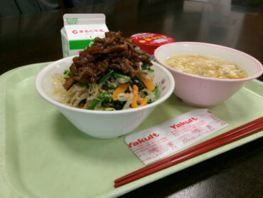 2025.10.17 NEW 全校生 食19丼の日 今日の給食は、食19丼でした。今月は、「高岡元気ビビンバ丼」。赤味噌になじんだ牛肉とごま油で和えられた野菜たちが一緒になって、ごはんがどんどん進みました。今日もごちそうさまでした。