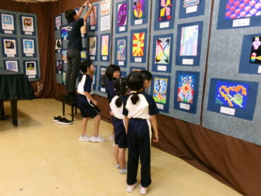2025.10.17 NEW 全校生 明日の準備が整いました 今日は、体育館の設営も、作品展示も終わり、学年ごとに鑑賞し合いました。前日の鑑賞としたので、しかりと回ることができました。みなさん、先輩や後輩のよさをたくさん見付けられましたか。 明日はたくさんのご来場をお待ちしています。