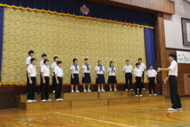 2025.10.18 NEW 全校生 令和7年度 学習発表会③ 午後からは9年生の出番でした。さすが、圧巻のステージに会場は引き込まれていました。 その後の閉会式では、全校でスクールソングと校歌を歌いあげました。 閉会式 各教室では、このようなメッセージで気持ちを高めました。 どの学年も素晴らしい発表でした。 発表会後の地域イベント「祭りだヨ!全員集合!」も大盛況でした。 皆様本当にありがとうございました。
