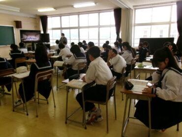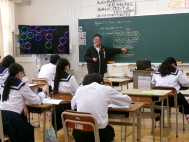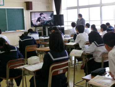 9年生の美術は鑑賞でした。誰もが知っている葛飾北斎。今はモニターを大きく使って鑑賞できるのでありがたいですね。