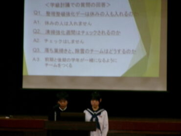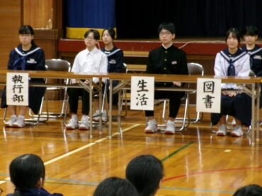 2025.10.22 NEW 4学年 5学年 6学年 7学年 8学年 9学年 令和7年度 後期児童生徒総会 後期児童生徒会総会を行いました。 「共に歩もう~助け合って笑顔あふれる学校~」をスローガンに掲げ、様々な活動に取り組んでいきます。説明に立った執行部のメンバー一人一人から、責任を負う緊張感と自覚の高まりを感じました。 全校児童生徒でよりよい国吉義務教育学校を創り上げてほしいと思います。 総会の後は、前後期の委員が顔合わせを行いました。