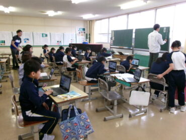 4年生は、来月の研究授業に向けて、今日から多目的での学習になっています。教室に入りきらないほどの先生方が集まられるための策なのです。今日は、先週書いたはじめに面白いと思ったところについてグループで意見交換をしました。