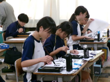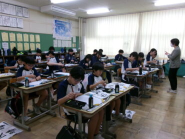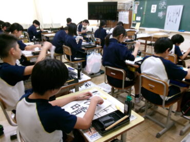 2025.10.27 6学年 6年 書写「快晴」 6年生の書写は「快晴」です。「快」は筆順にも注意が必要ですね。「晴」は日と青のバランスが難しそうですね。画数もずいぶん増えてきています。集中力はさすがの6年生です。