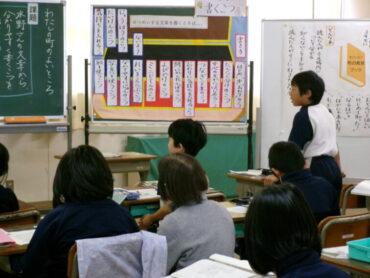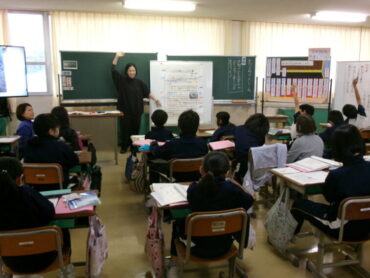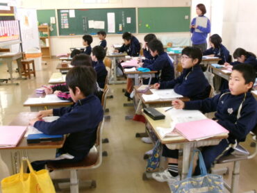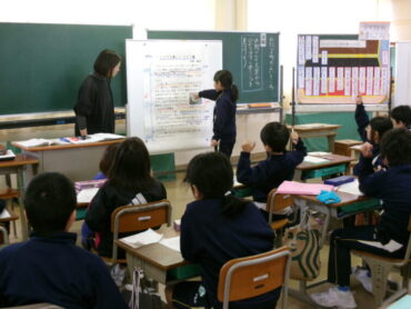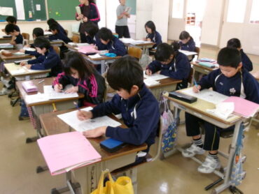 3年生も教室を多目的に移動しています。「わたしの町のよいところ」の授業が進んでいます。今日は、「水野さんの文章からわかりやすく書くこつをみつけよう」という課題でした。「ないようのこつ」「書き方のこつ」をたくさん見付けていました。