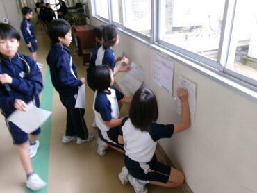 2025.10.29 1学年 2学年 3学年 4学年 5学年 6学年 「歩こうジャー」「環境クイズ」 前期課程の委員会が様々な取組をしています。休み時間に廊下を歩くと、生活委員会の「歩こうジャー」が廊下を走らないよう呼び掛けていました。また、環境委員会のクイズラリーも実施中です。校内のいたるところにある問題を解いて回っている人たちがいました。いろいろな視点からよりよい学校生活を意識していけるとよいですね。