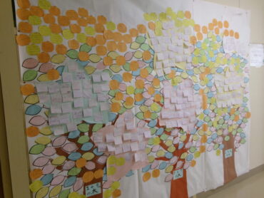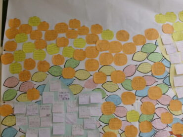 児童生徒会が取り組んでいる「笑顔の大輪」。学習発表会の取組が加わり、さらに大輪になってきました。全校児童生徒の感謝の言葉があふれてきています。