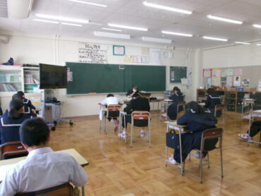 2025.10.30 7学年 8学年 市計算コンテスト 今日は、市計算コンテストの日でした。後期課程の7、8年生が取り組みました。 どの教科も基礎学力が土台です。日頃の学習の成果を発揮するため、みんな集中して問題に向かっていました。
