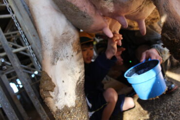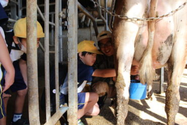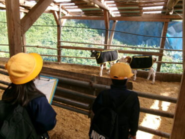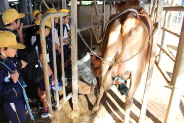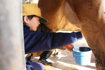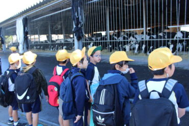 2025.11.4 NEW 2学年 2年 生活科「クローバーファーム見学」 約160頭の牛がみんなを迎えてくれました。乳しぼり体験は、全員が大成功でした。赤ちゃんもたくさん産まれていました。牛のお世話の仕事は朝5時に餌をあげることから始まることを聞き、大変な苦労がたくさんあることを学びました。2才で赤ちゃんを産んだらお乳が出ること、お乳が出なくなった牛は牛肉になること、氷見うどんや国吉林檎の捨てる部分等も牛の餌になっていること等、びっくりする話をたくさん聞きました。今日は心に残るとてもすてきな探検でした。今日絞られたお乳は明日の給食の牛乳にもなります。楽しみです。