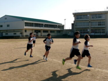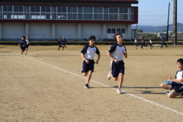2025.11.7 NEW 5学年 6学年 5、6年 ランニング記録会 5、6年生がランニング記録会に挑みました。高学年はグラウンド5周の1,000m走ります。自分の目標タイム、目標のペースで全員完走しました。新記録も誕生したようです。