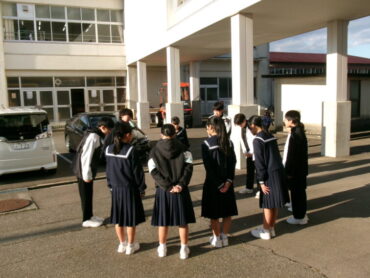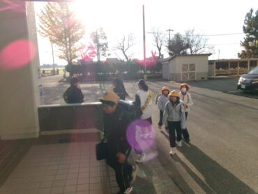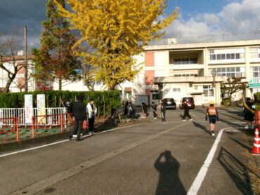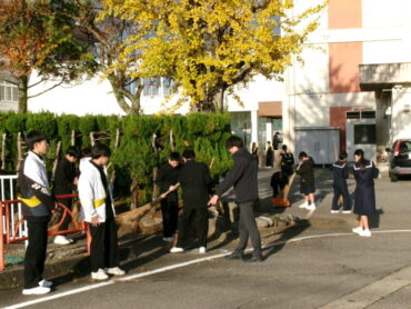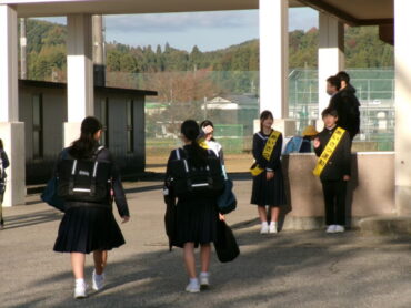 気持ちのよい朝です。委員会の挨拶運動と落ち葉はきが同時進行です。児童生徒会が朝から動いています。