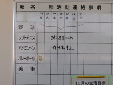 2025.11.18 7学年 8学年 9学年 放課後学習(後期課程) 後期課程は期末考査に向けて、部活動停止中です。今日から放課後学習が始まりました。2学期の復習をしっかりして来週の期末考査に備えましょう。