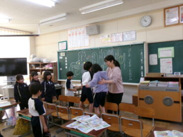 椅子を橋にして役割演技をしています。椅子を橋にしようというのは、子供たちからのアイディアでした。おおかみになったり、くまになったり、うさぎになったりして、気持ちを考え、おもいやりや、周りの人に親切にすることについて、みんなで楽しく考えました。