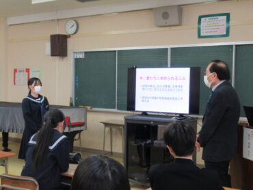 2025.11.26 NEW 8学年 8年 性教育講演会 学校産婦人科医の副田善勝先生(あいARTクリニック理事長)をお招きし、8年生を対象に性教育講演会を実施しました。「自分らしく幸せに生きる~思春期の心と体~」をテーマに、だんだんと大人に近付く8年生のみなさんが、正しい知識をもち、自分や周りの人を大切にして行動できるようお話していただきました。思春期の心や体の変化、妊娠や出産、性感染症等、初めて聞く話もあり、真剣に聞いていました。