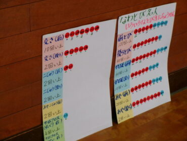 2年生の体育は、なわとびがどんどん進んでいます。今日は、一人一人の技の確認も行いました。友達の回数が増えていくと、周りで応援する声もどんどん大きくなっていきます。跳んでいる人もエネルギーをもらえます。みんなの力でみんなが上達していく関わりがよいですね。