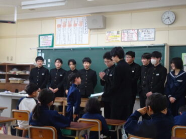 2025.12.8 1学年 9学年 今朝のできごと 今朝、1年生教室に9年生がやってきました。1年生はびっくりして驚きの表情。実は、先月の家庭科の時間に1年生と9年生は交流活動をしており、9年生から1年生に対して「一緒に遊んでくれてありがとう!」の感謝のメッセージを届けにきてくれたのでした。1年生も先週、9年生の教室に感謝のメッセージを届けにきてくれています。教室に大切に掲示してあります。