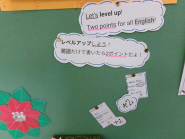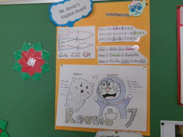 職員室の前にALTの先生から皆さんに2択の質問が届いています。今回は、ピカチュウorドラえもんのようです。ぜひ投票してみてください。