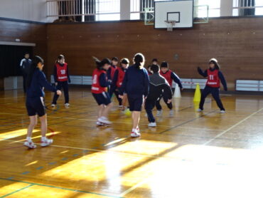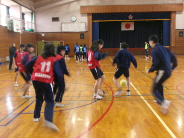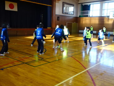 6年生の企画はなかよしフットサルでした。体育でした特別なルールのフットサルを6・8年混合チームでしました。作戦タイムでは6年生が前に出て8年生と意見を交わしている姿が印象的でした。