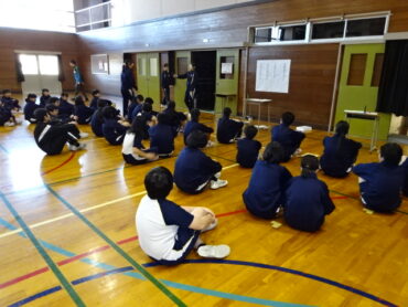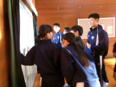 6年生と8年生が交流学習をしました。目当ては集会を通して互いを知り、交流を通してさらに仲を深めることです。