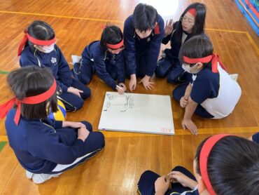 2025.12.16 NEW 4学年 4年 体育「キャッチバレー」 4年生は体育で、これまでキャッチバレーを学習してきました。今日は単元の終わりに、団ごとに総当たりで試合をする「国吉カップ」を開催しました。 試合前には、チーム練習をしたり、チームごとに作戦を確認し合ったりしました。試合では、3段攻撃を意識して、声を掛け合う姿がどの団にも見られました。結果は僅差で白団が優勝しました。振り返りでは、「またチームで行う競技がしたい」「休み時間にもしたいな」とキャッチバレーで仲間とつなぐ楽しさを肌で感じていたようでした。