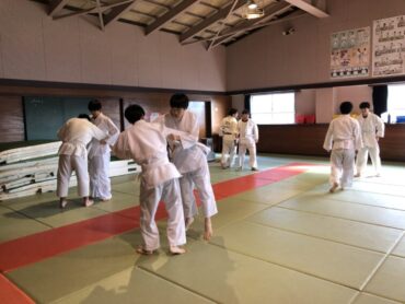 9年生の柔道では、「大腰」「体落とし」の技に挑戦してきました。学習専用端末を活用し、自分たちの動きを動画で撮影し、互いに動きの確認をしたり、見本動画を見て比較したりと積極的に柔道に取り組んできました。技をかけるポイントをしっかり意識をして技をかけ合う9年生。とても迫力がありました。