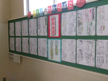 2025.12.19 7学年 全校生 「ことばのたからばこ」 階段踊り場の「ことばのたからばこ」に7年生の故事成語が登場しました。 「蛍雪の功」「雨だれ石を穿つ」「和して同ぜず」…難しい言葉も並んでいますが。説明が添えられているので、前期課程の人たちも覚えてみてください。