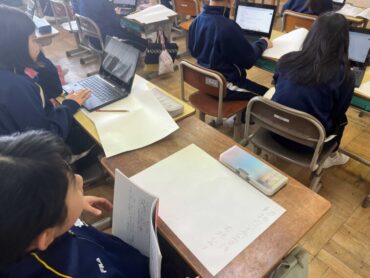 「この詩、同じ言葉がたくさん出てきておもしろいよ。」「この詩、短すぎるから見て」等、それぞれの詩の楽しみ方を伝え合いながら、詩を集めていました。オリジナルの詩集の完成が待ち遠しいです。