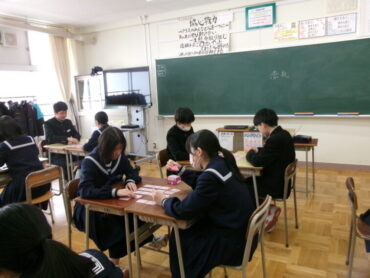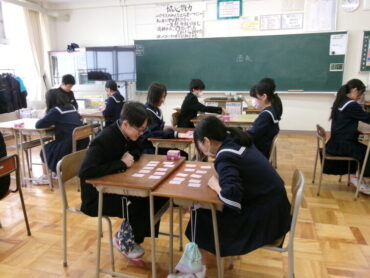 8年生は、百人一首を学習しています。相手をローテーションし、対戦しました。