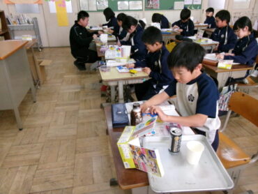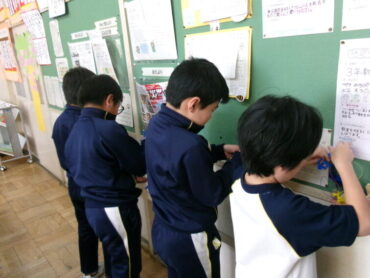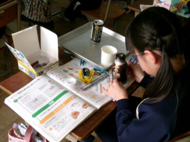 3年生の理科では、豆電球からのびる導線をいろいろな物につなげて、どんな物なら電気が通って、豆電球が光るか調べました。結果は、十円玉や一円玉、クリップ等が光りました。紙やプラスチックは、光りませんでした。空き缶の絵のかいてある面は光らなかったけど、やすりで削って銀色にすると光りました。子供たちはどのように考察してくれるでしょうか。