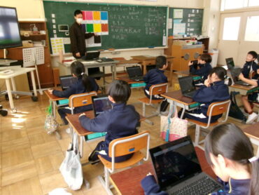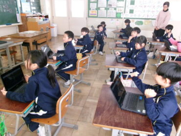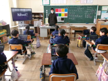後半は、端末も使ってクイズ形式で楽しく学びました。出題ももちろん英語ですが、みんな上手に解答していました。