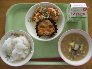 給食週間5日目のテーマは、SDGs目標12「つくる責任、つかう責任」です。この目標では、一人あたりの食品ロス量を半分に減らそうという取組があります。今日の給食では、食品ロスになるような食材をふんだんに使用した献立になっています。