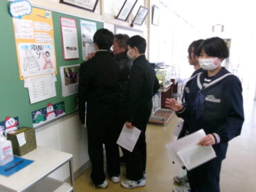 2026.2.3 NEW 7学年 7年 英単語マスターへの道 昼休み、職員室前付近が行列でにぎわっています。7年生が、英単語のチェックに来ているのです。先月の中頃から続けており、みんなレベルが上がってきています。英語科の先生だけでなく、後期課程の先生方はもちろん、前期課程の先生も協力してくださっています。コツコツと取り組むことは、きっと力になります!