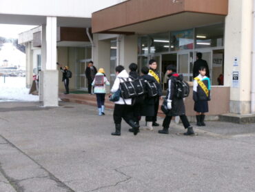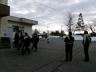 2026.2.4 NEW 全校生 挨拶運動 雪も落ち着き、日差しも差し込む日となりましたが、朝は冷え込み、玄関で氷を見せてくれる前期課程生もいました。寒さに負けず、生活委員があいさつ運動に立ってくれました。