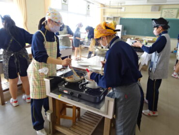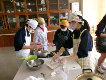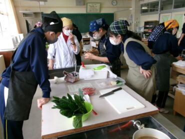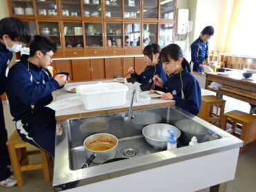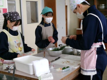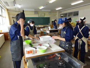 2026.2.5 NEW 8学年 8年家庭科「調理実習」 8年生が調理実習を行いました。「鮭のムニエル」、「ミネストローネ」、「ほうれん草の胡麻和え」の豪華3品です。たくさんの行程を各班分担して手際よくこなしていました。家でも夕食を担当できると思います。皆さん、ぜひ、力を発揮してください。