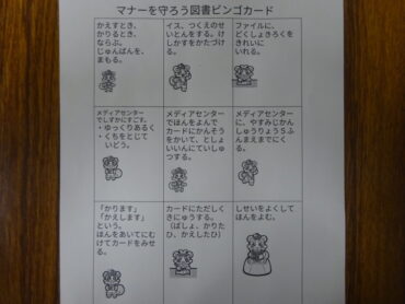2026.2.10 1学年 2学年 3学年 4学年 5学年 6学年 「マナーを守ろう!図書ビンゴ」 前期課程の図書委員会が「マナーを守ろう!図書ビンゴ」の取組を始めました。読書する態度やメディアセンターの使い方をよくすることがねらいです。図書ビンゴカードのスタンプがビンゴになったらいつでも借りられる券がもらえるようです。ぜひ、参加してください。