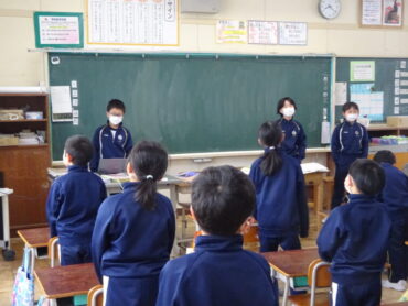 2026.2.17 1学年 2学年 5学年 朝の歌練習 5年生が主体となって取り組んでいる朝の歌練習。毎日、朝の会の前に各学年の教室へ出向き、練習をリードしてくれています。インフルエンザも収まってきて、1、2年生の練習も進んでいます。歌声が響き渡るようになってきました。