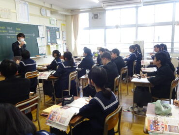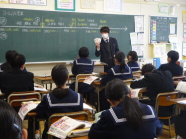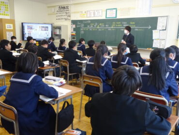 7年生の社会は、世界史の学習に入っているようです。黒板では、日本史と世界史の年表が分かりやすく並べて示されていました。また、トランプを用いて中世の身分などを確認していました。J(ジャック)は兵士、Q(クイーン)は女王、K(キング)は国王、そして、ジョーカーについても考えていました。こんなところにも世界史への入り口があるのですね。