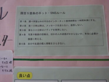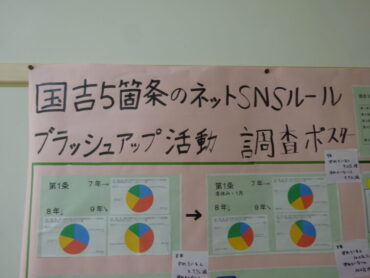 2026.2.24 NEW 7学年 8学年 9学年 国吉5箇条のネット・SNSルールブラッシュアップ活動 本校には「国吉5箇条のネット・SNSルール」があります。後期課程生活委員会がブラッシュアップ活動に取り組みました。これからも、守ることができていること、できていないことを振り返りながら、安全にネットやSNSを活用していきましょう。