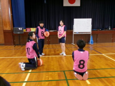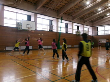 2026.2.25 NEW 7学年 7年 体育「バスケットボール」 7年生は、体育でバスケットボールに取り組んでいます。パスやドリブル、シュート、ターンなどの基本技能を学習しました。今日の授業では、習ったことを生かして、ハーフコートでの試合を行っています。試合になると、みんな白熱し、どこを見ても熱いゲームばかり!より多く得点をとるためには、どうすればよいのかチームで話し合いながら進めています。