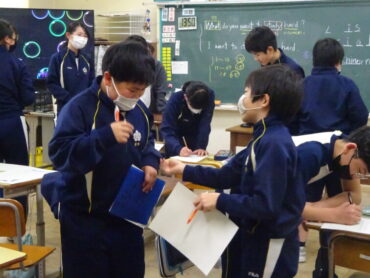 2026.2.25 NEW 6学年 6年 外国語「中学校の教科」 6年生の外国語は「中学校の教科」です。japanese、science、musicなどだけでなく、period for integrated study(総合的な学習)まで学びました。これらを使って「What do you want to study hard?」「I want to study __ hard.」の会話で伝え合いました。 授業の前半には、ALTの先生から「中国式お年玉?」のサプライズプレゼントがありました。なんときれいな「ポチ袋」でしょうか。