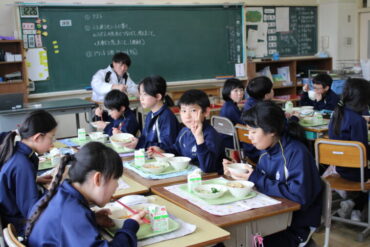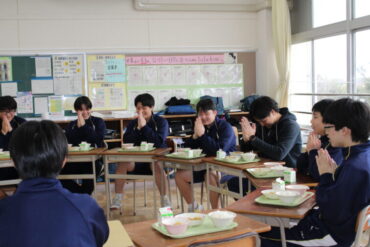 9年生は、6年時で担任だった先生と給食を食べました。教室で机を輪にして、とても微笑ましい光景でした。始めは少し照れくさそうな9年生でしたが、懐かしい話(名物の先生の漫談?)とともに楽しい時間となりました。