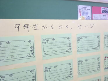 2026.3.3 NEW 9学年 全校生 9年生からのメッセージ 児童生徒玄関には、9年生から後輩たちへのメッセージが交流活動の写真と一緒に掲示されています。感謝の気持ちや下級生へのエールなど、心温まる言葉をありがとうございます!
