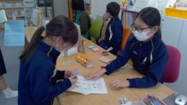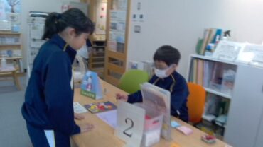 2026.3.5 1学年 2学年 3学年 4学年 5学年 6学年 図書マナービンゴ 景品引換(前期課程図書委員会) 2月に実施した図書マナービンゴの期間中には、ビンゴカードに書かれた項目に沿って、メディアセンターでの過ごし方のマナーに気を付けて行動する多くの子供たちの姿が見られました。 今日から、達成したビンゴの数に応じて、「2冊借りられる券」や「いつでも借りられる券」と引き換えることができます。早速、8ビンゴというすべての項目を達成した児童などが訪れ、笑顔で景品を手にしていました。