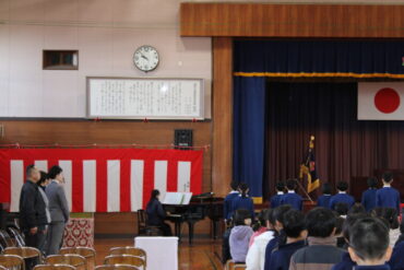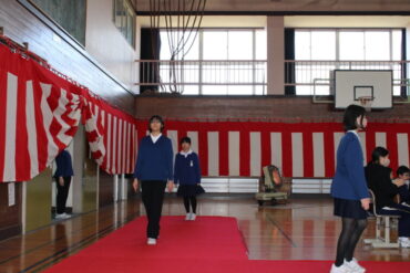2026.3.9 NEW 1学年 2学年 3学年 4学年 5学年 6学年 7学年 8学年 修了証書授与式予行 6年生の修了証書授与式の予行を行いました。どの学年も、前回の練習よりよくなっています。今日は、証書の授与も全員やってみました。歩き慣れないレッドカーペットには、少し戸惑いもみられましたが、みんな緊張感をもって練習に臨んでいました。